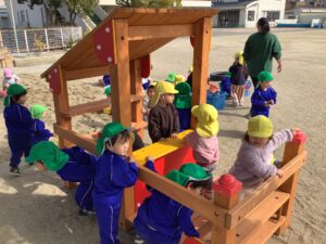 園に新しい遊具が届きました。